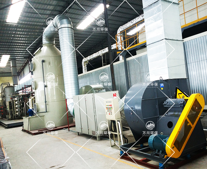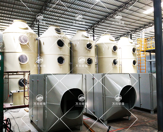 根據(jù)廠方提供的資料及現(xiàn)場勘察的情況。其噴漆廢氣的來源主要為無塵噴漆車間內(nèi)的5條自動(dòng)噴涂線。在生產(chǎn)過程中有噴漆,該工序產(chǎn)生了一定量含三苯有機(jī)廢氣和噴漆粉塵,該廢氣不僅對環(huán)境造成污染,而且對人體有較大的危害作用,同時(shí)也破壞了周邊的環(huán)境,造成了不良的影響,需進(jìn)行處理后排放。我們工程師分析了該廢氣的特點(diǎn)和以往的案例經(jīng)驗(yàn),采用了“水簾柜+噴淋塔+活性炭吸附塔”這套解決方案。