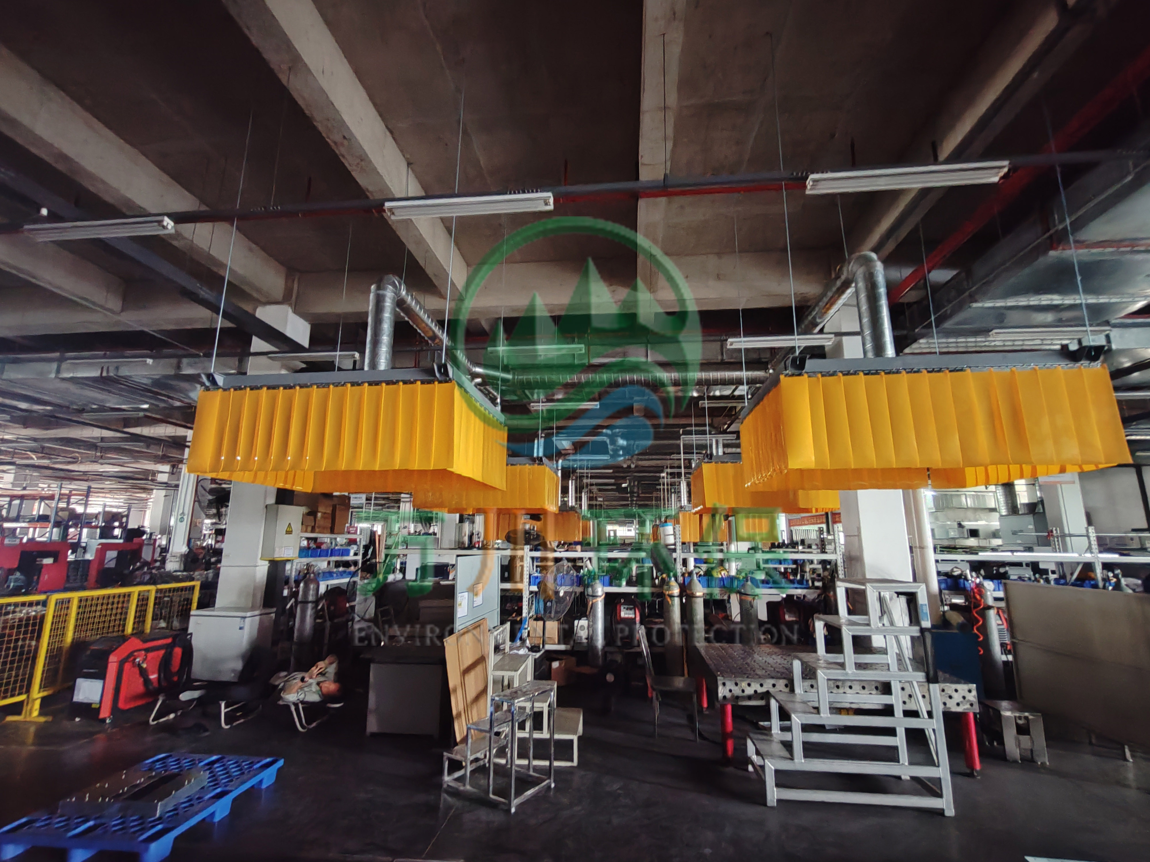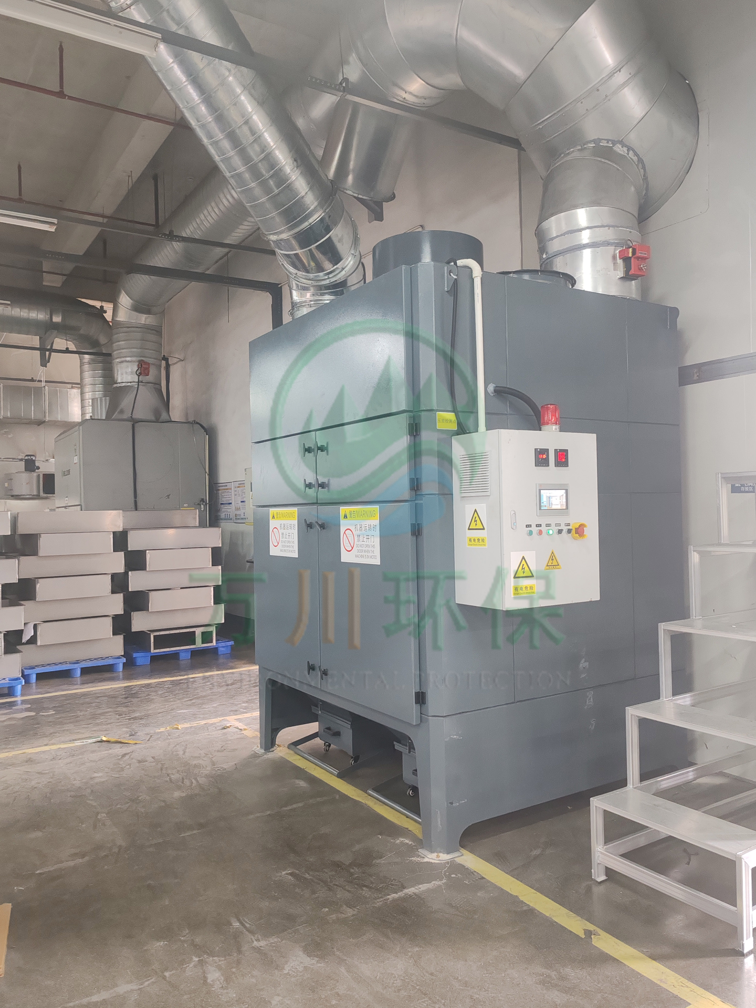 工程師根據(jù)現(xiàn)場焊接煙塵性質(zhì)、粒徑、現(xiàn)場工況等因素考量,故采用脈沖濾筒除塵器作為處理設(shè)備