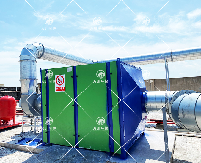 橡膠廢氣從管道進入到設(shè)備內(nèi),穿過第一層噴淋層,用水沖洗廢氣,再進入到第二、第三層填料層,去除水溶性的粉塵和廢氣,最后進入到活性炭吸附層,利用活性炭的吸附力,吸附有機廢氣,達到凈化的效果。