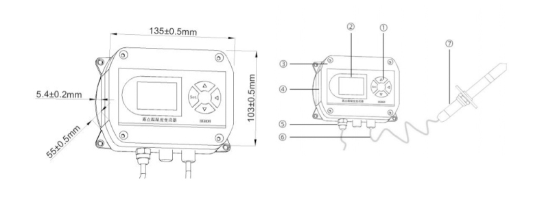 ●?變送器電路工作溫度:-20°C~+60°C,0%RH~95%RH,非結(jié)露