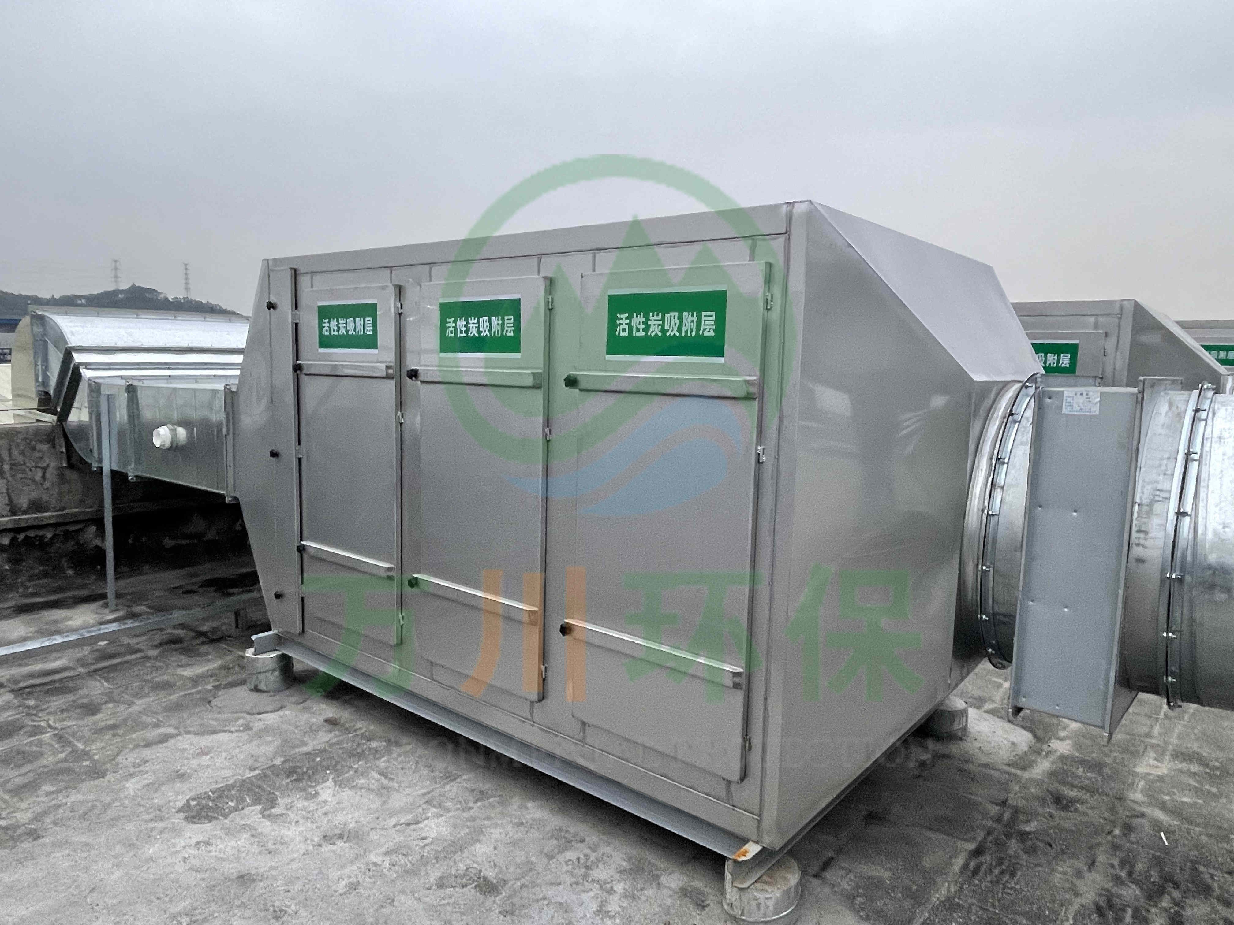 在廢氣處理上選用了活性炭吸附法,我們以活性炭作為吸附介質(zhì),廢氣通過活性炭吸附裝置,活性碳吸附有機揮發(fā)物,使其與氣體混合物分離,從而使氣體得到凈化。